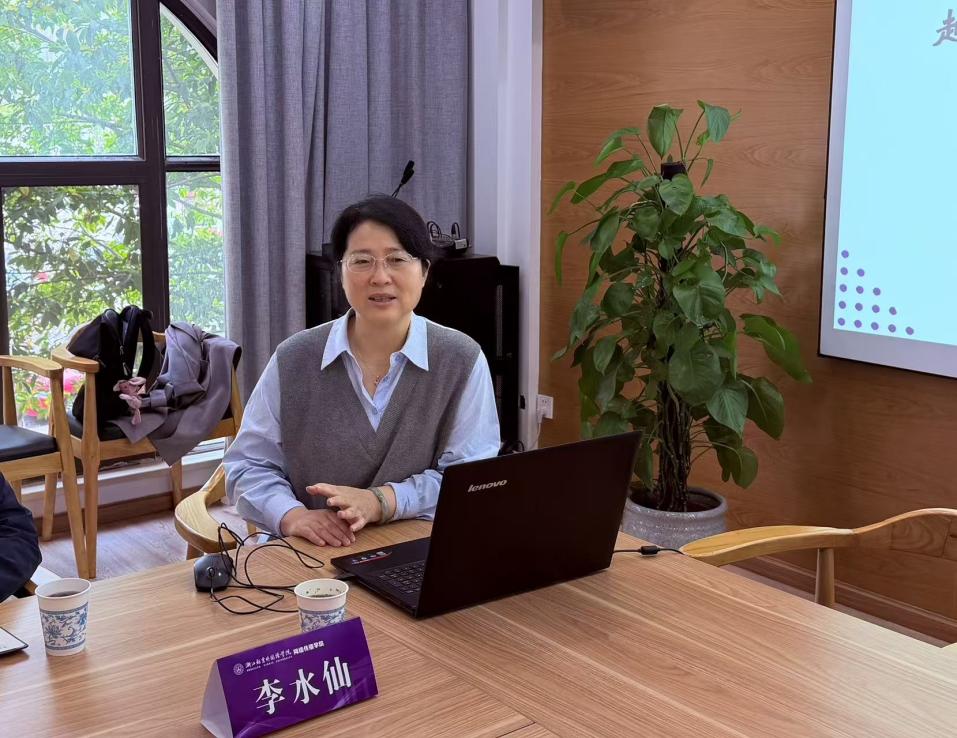 4月1日下午,网络传播学院越州新闻传播大讲堂之镜湖教学沙龙(教材建设专题)在4-217会议室举办。中国传媒大学出版社语言艺术编辑部主任、语言学及应用语言学博士李水仙编审担任主讲,学院各系主任、人工智能赋能微专业课程教材建设相关教师参加本次活动。
